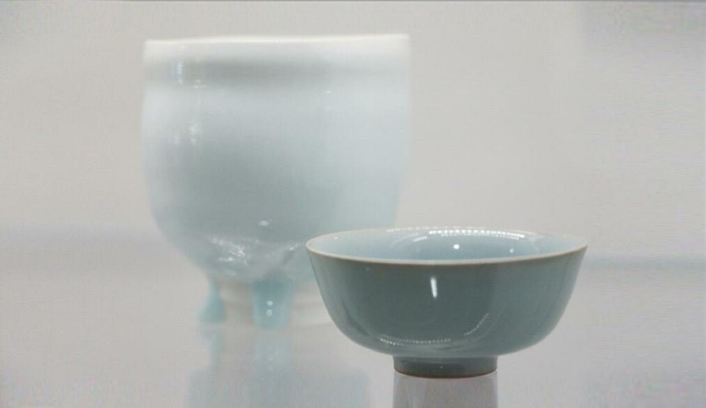 Sansei Suzuki crafted the traditional sake cup on the left and Kato Tsubusa produced the contemporary teacup on the right.