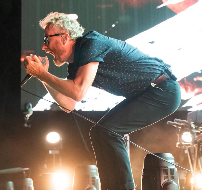 Photos (clockwise from top left): BROCKHAMPTON, a 13-person hip-hop group, concluded the fall Frost season in November 2019; a crowd at Frost Amphitheater; Bob Dylan and his band; The National’s lead singer Matt Berninger; country star Willie Nelson