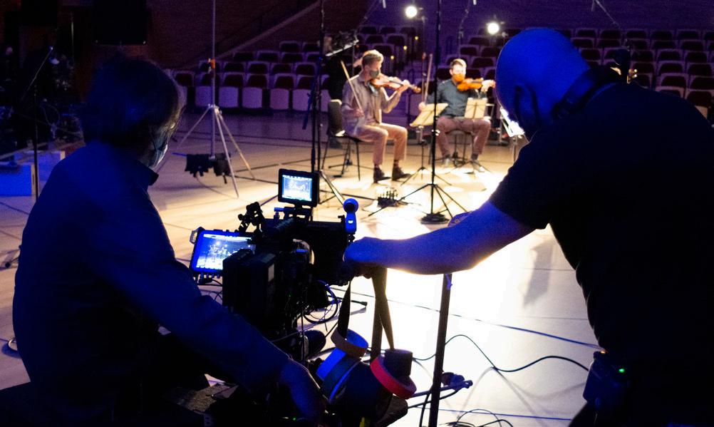 Behind the scenes at Bing Concert Hall during our film shoot for pianist Garrick Ohlsson on September 17, 2020