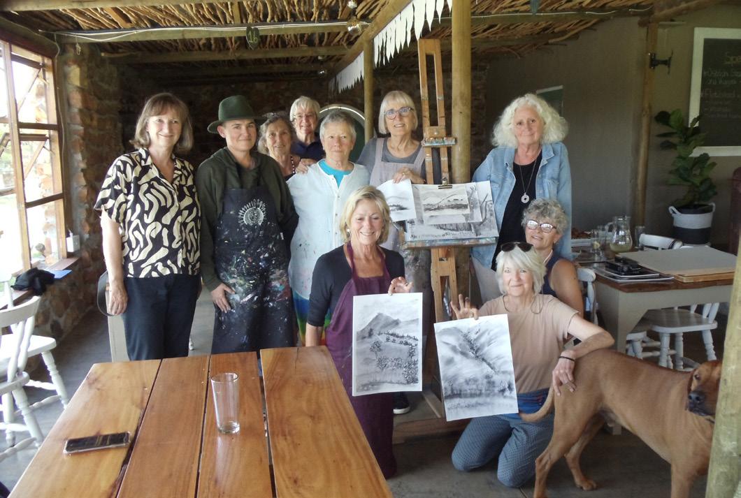 On Wednesday, the 26th of October, a group of eight artists and budding artists got together for a morning of learning to work with Charcoal. Most of the group had never tried this medium before, so it was a learning-while-having-fun experience. There was much concentration, admiration of each other’s works in progress and laughter. The workshop was a Stanford Rotary fundraising ini tiative. Rotary would like to thank Sandy and Marlene for putting the workshop together, Tracy Algar for teaching and demonstrating, Stan ford Hills for the venue, Annie for the cupcakes, and most importantly to all the ladies who joined in and took part. By popular demand, this type of event will definitely be repeated in the new year.
