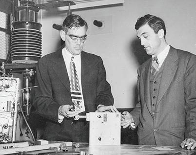 • Physics Professor William Hansen and researchers Russell Varian (’25, MA ’27) and his brother Sigurd collaborate with colleagues in electrical engineering to invent the klystron, the first significantly powerful source of microwaves.