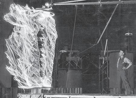 • Harris J. Ryan High-Voltage Laboratory, the largest at any university and costing nearly $500,000, debuts its 2,100,000volt test station. Intended for the study of long-distance transmission of electricity, it is the highest voltage ever obtained at commercial frequency.