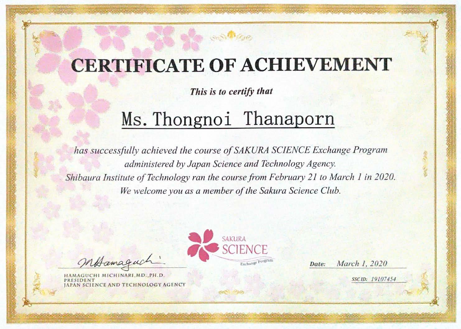 Certificate and Study results