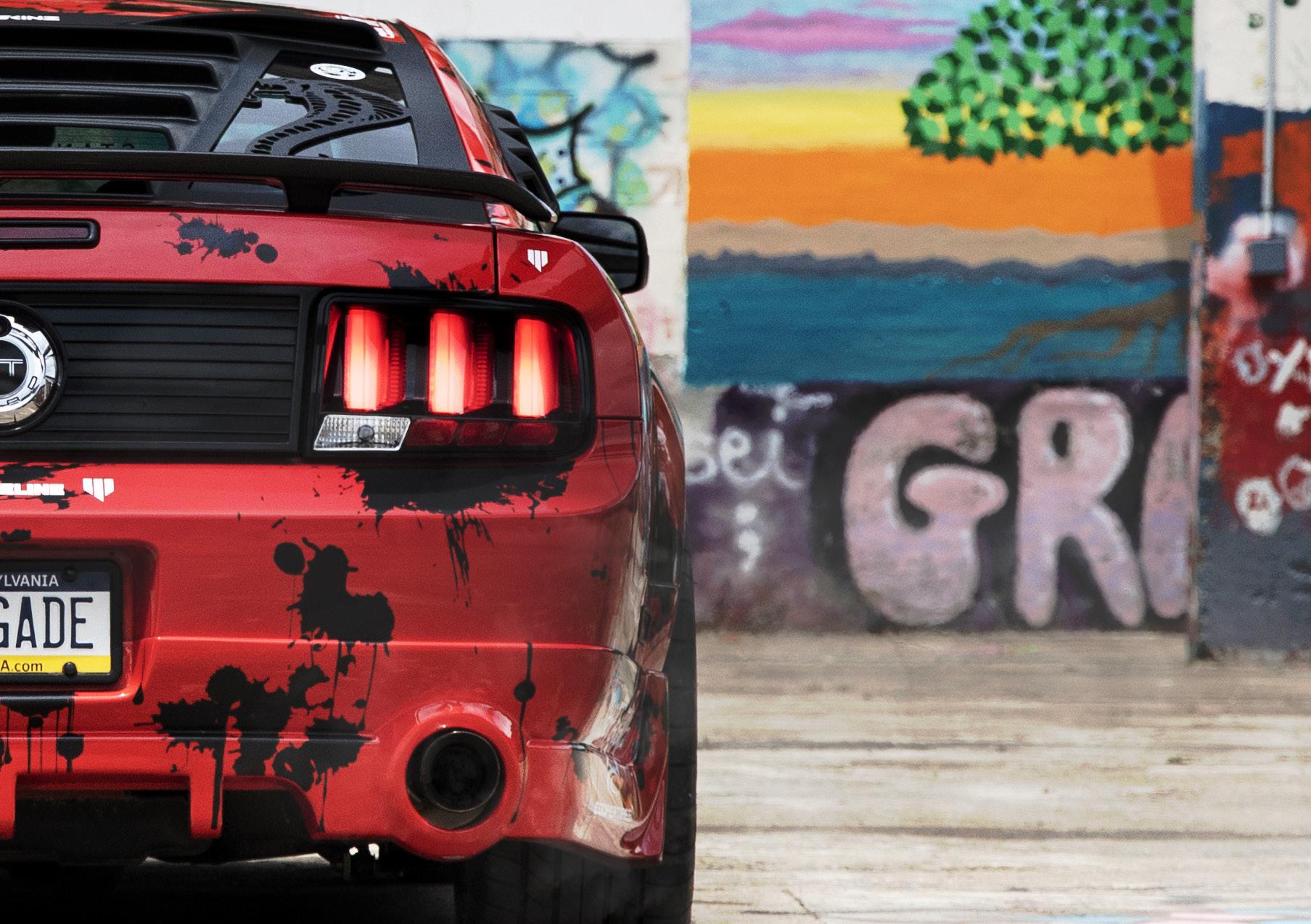 Mods include SR Performance intake, Hurst grille, Bama tuned 93, Flowmaster X pipe, and Scott Drake rear wing.