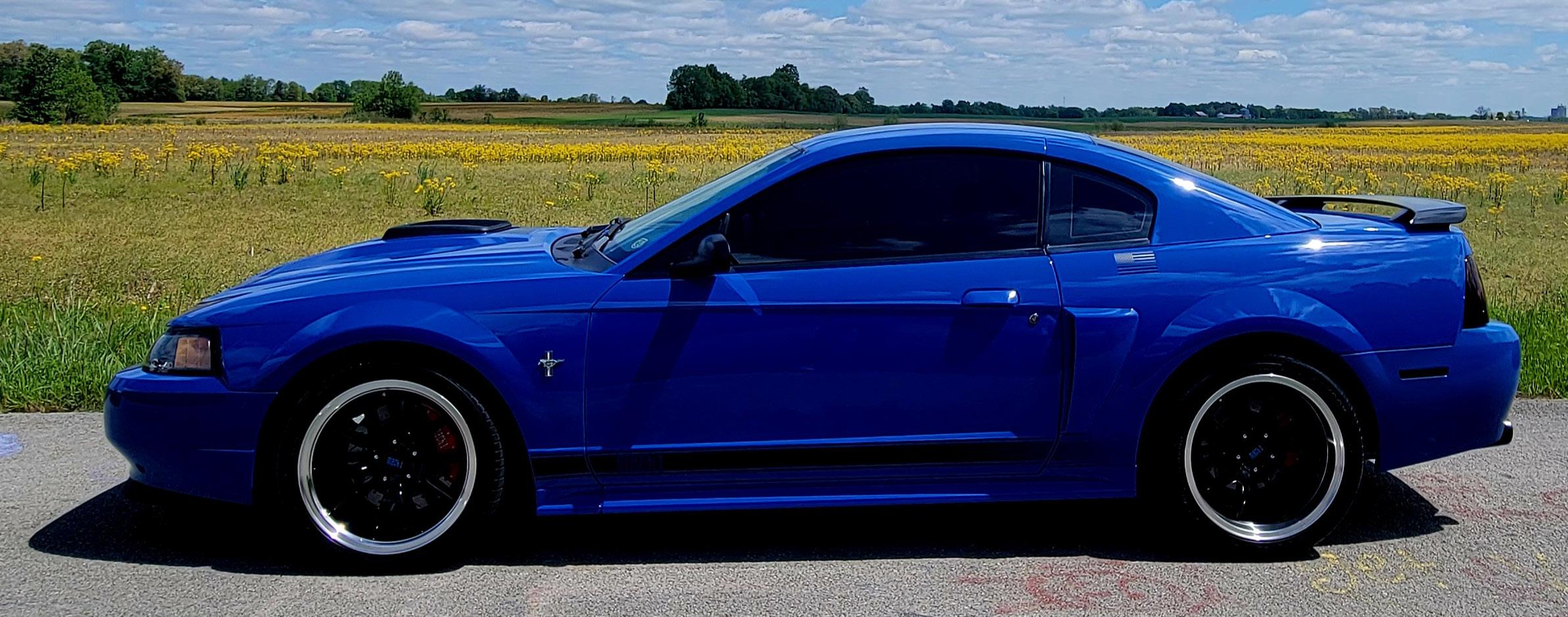 This is my 2002 procharged Mustang GT. I have owned this car for almost two years. I got my first Mustang in 2017 and I have owned over 15 different Mustangs, but the Wild Child is my baby and he stands out in the crowd.