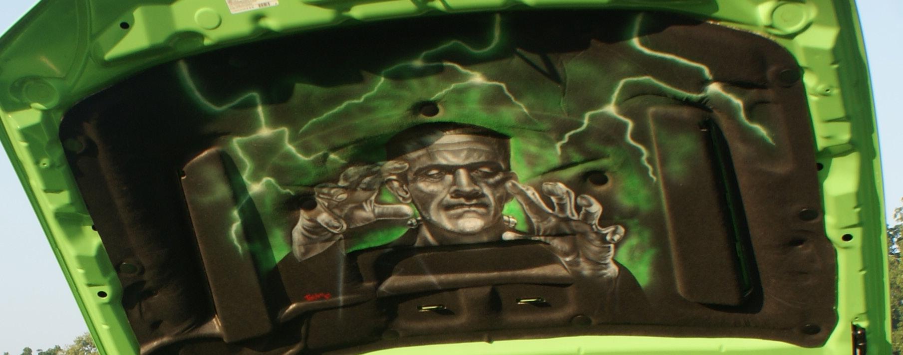 The wrap on my car is supposed to represent the BiFrost. Norse mythology from Marvel comics. The BiFrost is essentially a rainbow bridge that connects Asgard to Midgard. I chose to do the green and purple sides to show a little of what that might be like. One side of the car is mainly green