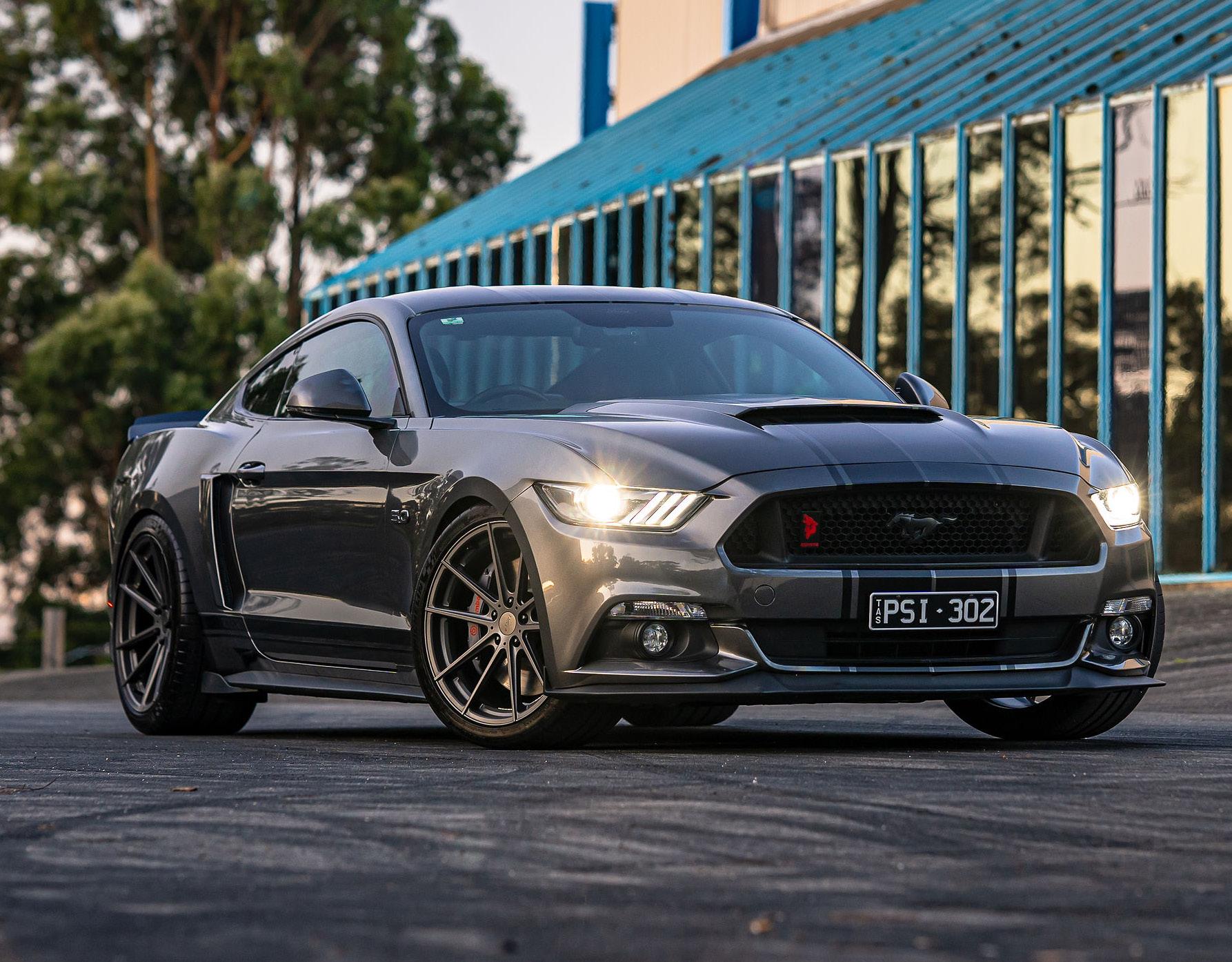 Being a Mustang owner for many years, when I caught wind of the arrival of the S550, I started buying mods before I bought the car! Once the latest generation of the Ford Mustang was announced, I had a vision of building my dream car on this awesome new platform. One day while browsing ideas on YouTube for the new project, I ran across a video that Ferrada Wheels had released of a bagged 16 Mustang on their new FR1s. From that moment things started moving quickly! I contacted Ferrada and got the specific offset of the wheels used in the video and they were ordered that day. Within a week I found a used 2016 GT/PP with 1500 miles on it and the build was on! The first stage was an Airlift Performance system and the new Ferradas. Within two weeks came the 2.9 liter, stage 2 Whipple supercharger, one piece aluminum driveshaft from The Driveshaft Shop, and Ford Racing half shafts rated to 1400hp. With some fuel system upgrades and 14psi boost, it made a little over 750rwhp on the dyno. The already awesome braking system has been assisted with Baer Eradispeed rotors on the front and rear. Huge weight savings!