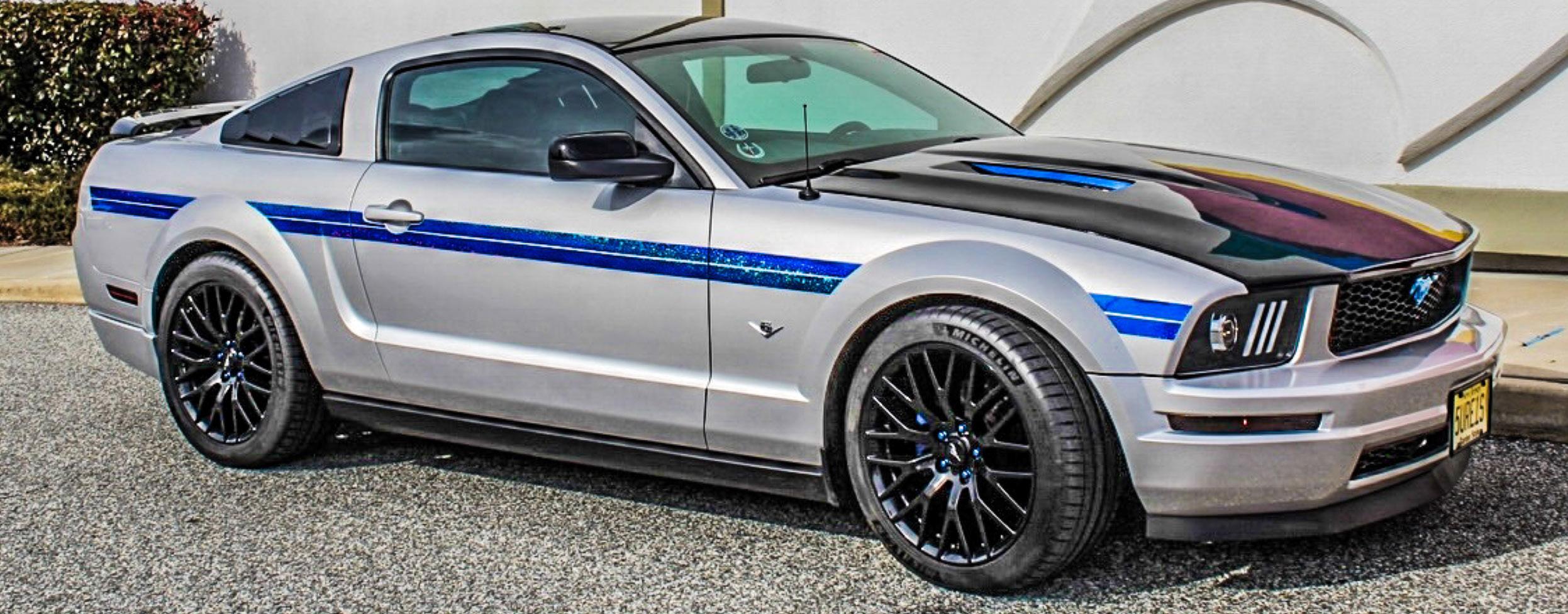 My Mustang passion started when my cousin let me drive his 1967 Fastback, I was sold! Due to life’s journey (marriage, kids, everyday life) I had to wait 30 years to get my first Mustang, my 2005 V6 “Lexi”. She was a diamond in the rough ready for an overhaul, which over a five year time frame I did just that! My inspiration for my 2005 was my dad who gave me my love for cars. I turned my 2005 into a tribute car to my dad and his beloved tractor, hence the blue stripes. I also want to raise awareness through my 2005 on Elderly Abuse in rehab/nursing homes where unfortunately my dad died due to a TBI from a fall in one.