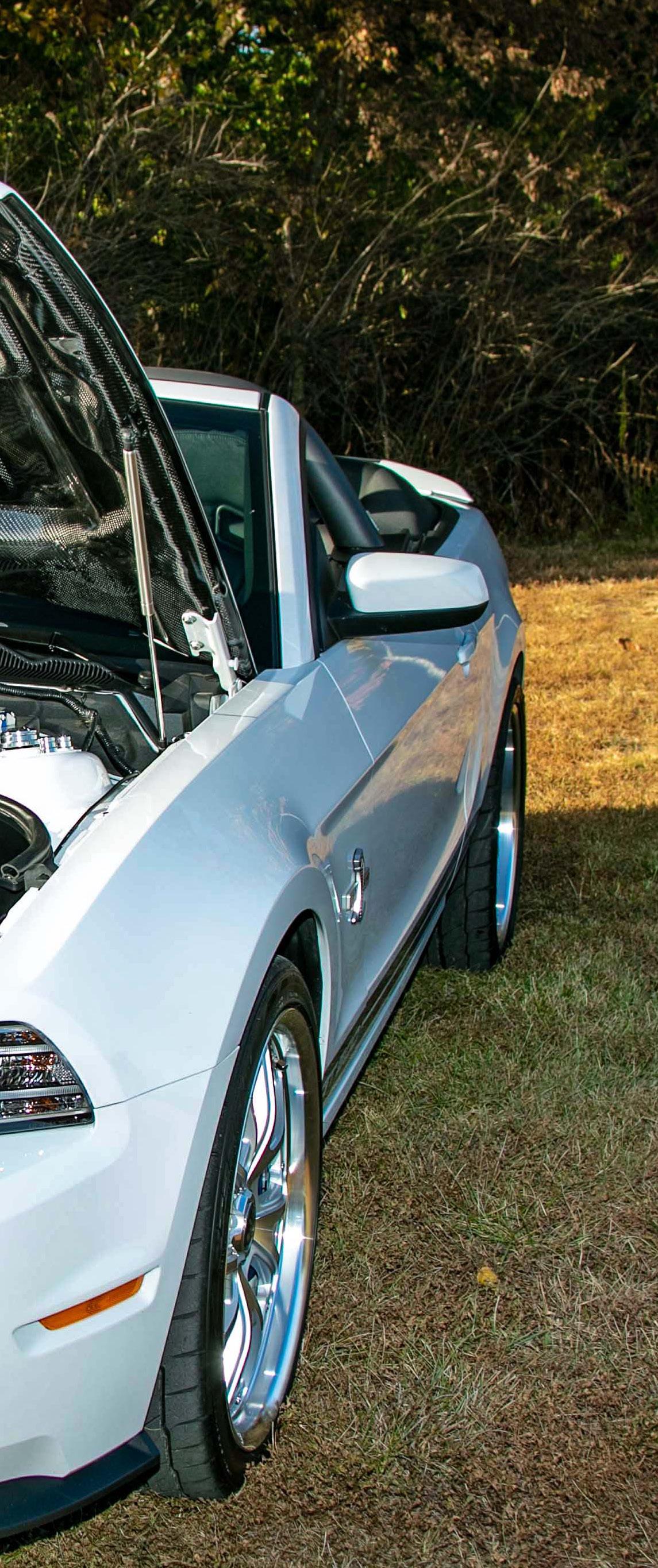 I purchased this 2014 Shelby GT 500 from a friend in my Mustang group about two years ago. She had taken great care of it. The car was amazing. Since then I have added the Shelby CS 40 wheels, had the supercharger ported and polished, put on a carbon fiber hood, added a few extra shiny parts along with the JLT cold air intake, and the tune to increase the horsepower just a little bit north of 755. Making this convertible, a head turning go-getter.