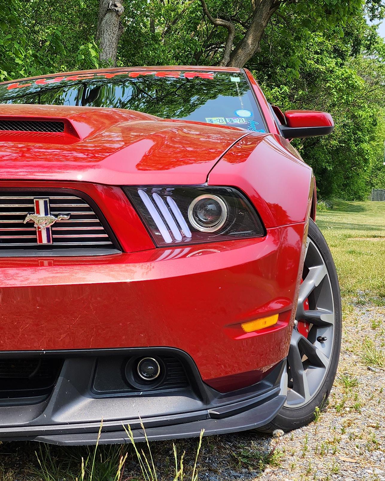 Lucyfer is a 2011 Candy Red Mustang GT/CS. She is my second Mustang. I’ve had her since October 2019. She has a cold air intake by Airaid, Stainless Works exhaust, rear window louvers, Cervini ram air hood, Ford Boss 302 chin spliter, sequential projector headlights by Raxiom, tail lights by Raxiom, and I will be adding much more to her as time goes on.