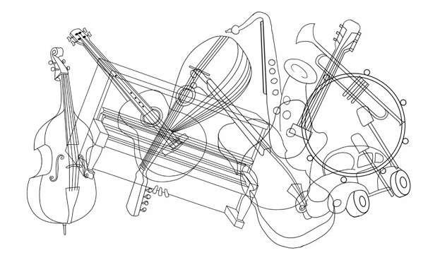 Музика грається за допомогою музичних інструментів. Розгляньте уважно плутанку.