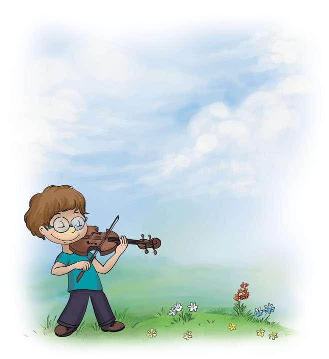 У музиці є високі та низькі звуки. Якими звуками зображений хлопчик, а якими — Змія?
