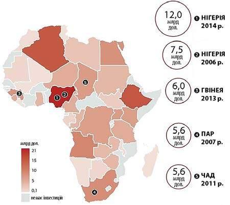ПАР, Єгипту, Алжиру, Нігерії) майже відсутній. У регіоні переважно добувають та