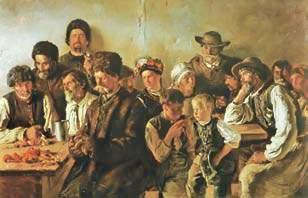 но зіпсований наслідками споживання горілки. Побиття одним із синів батька остаточно руйнує видимість патріархальної ідилії. Складається враження, що в родині по-справжньому