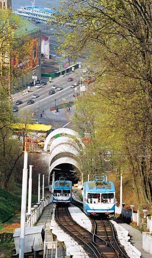 Київ розташований на схилах Дніпра. Його вул..ці то піднімаються вгору, то опускаються вниз.