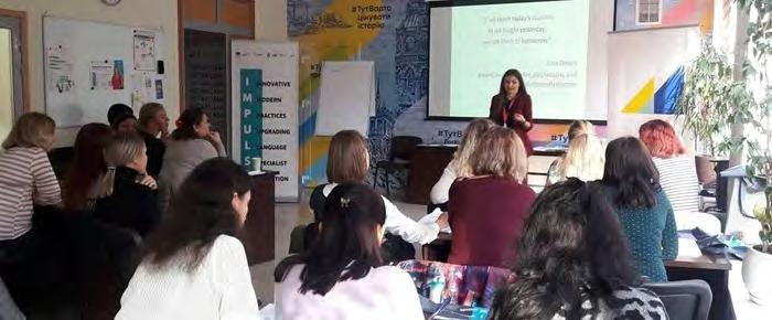 123 Спеціалісти різних галузей збираються для навчання та обміну досвідом. такі заходи називають тренінгами, семінарами, конференціями. На фотографії — тренінг для тих, хто викладає англійську мову життєвим, професійним та іншими видами досвіду. У засобах масової інформації можна зустріти чимало згадок про ці форми, де досвід характеризується як «шлях до вдосконалення», «засіб професійного зрос тання», «запорука успішного розвитку», «взаємозбагачення» тощо. Наприклад, «проведена педагогічна нарада стала шляхом до педагогічного зростання вчителів та вчительок», або «медична практика в од ній із європейських лікарень є засобом професійного зростання лікарів з України», «запорукою успішного розвитку українського ракетобудування є обмін досвідом з іноземними колегами», «проведені курси укр аїнських поліціянтів показали, що обмін досві дом — це завжди взаємозбагачення». Усі ці характе ристики об’єднує позитивна оцінка процесів обміну досвідом для тих, між ким вони відбуваються. Тож закликаємо вас також не забувати про користь обміну досвідом для людини.
