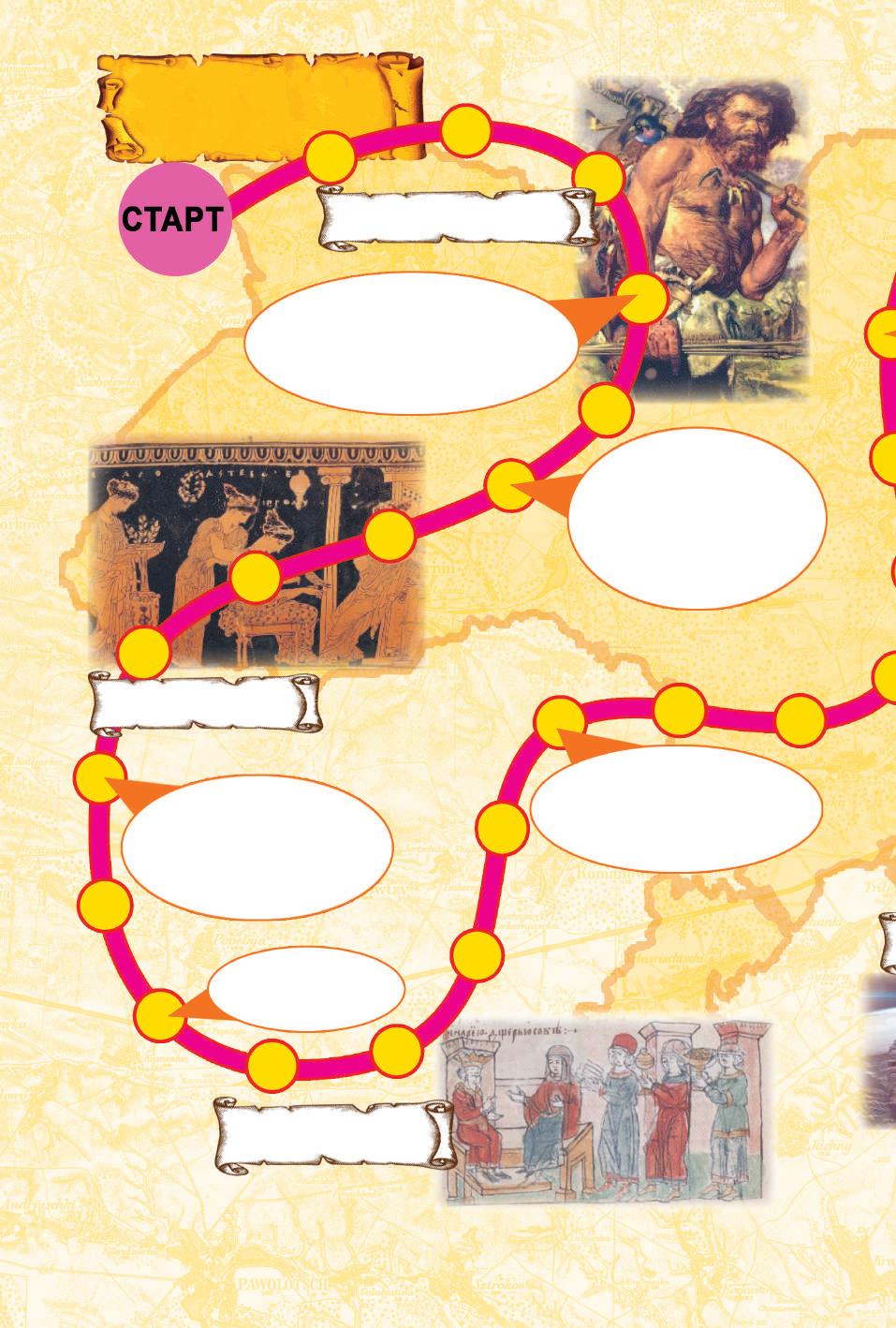 5 ЛЮБІ П’ЯТИКЛАСНИКИ ТА П’ЯТИКЛАСНИЦІ! Цього навчального року ви розпочинаєте вивчення нового шкільного предмета, який допоможе вам ознайомитися з наукою історією. Здавна знання про минуле було огорнуте казко вим чаром, а людей, які володіли цим знанням, уважали майже чарівниками. Чому так? Озирніться довкола: усе, що ви бачите, має своє минуле. Тож не дивно, що наше майбутнє визначене не тільки сьогоднішніми вчинками, а й тим досвідом, який ми отримали у спадок від минулого. Ідеться передусім про те, як у подіях дня вчорашнього змінювалися уявлення людей про са мих себе: як формувалося розуміння цінності людини, який сенс вкладався в поняття «права людини», як удосконалювався досвід взаємодії. Зрозуміти це вам допоможе навчання історії. Щоб цікаво навчатися історії, варто постійно тримати на думці, що це наука про нас про наше життя. Саме тому на уроках ви матимете нагоду ділитися історіями з власного життя та життя своїх родин, малюватимете та придумуватимете сюжети для ілюстрацій, ділитиметеся враженнями про діяння визначних історичних постатей і про пам’ятки минулого. Підручник дасть вам змогу відчути себе творцями своєї історії, безліччю ниточок пов’язаної з історією рідної землі. Творіть і навчайтеся! Виконуючи завдання, ви міркуватимете й ділитиметеся при пущеннями, порівнюватимете свій досвід з досвідом одноклас ників та однокласниць, звірятимете свої роздуми з інформацією різноманітних текстів, відповідатимете на запитання усе це допоможе вам зрозуміти історію, навчить пояснювати історичні факти, події, явища, які повсякчас нагадують про себе в буден ному житті. Щоб ви орієнтувалися, коли та як доречно братися за виконання завдання, вони позначені в підручнику символами підказками: , , . Тексти та завдання до них позначені таким малюнком: . Для тих, хто хоче знати більше, прислужаться матеріали в рубриках та . Крім того, у завданнях є вказівки, як саме їх викону вати у парах чи групах . Джерела історичної інформації, яку ви опрацьовуватимете, дуже різні. Це і навчальні тексти, і уривки з документів та розповідей очевидців, і фотографії, і карти, і словники та енциклопедії, і відео та аудіоматеріали тощо. Призначення підручника – навчити вас працювати з різними джерелами інформації, сформувати відповідні навички й підготувати до вивчення предмета «історія» у старших класах. Щиро зичимо успіхів! Сподіваємося, навчатися історії вам буде цікаво і новий предмет стане вашим улюбленим.