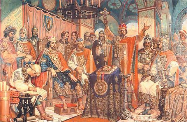 39 РОЗДІЛ 1 Графіті зі стін Софійського собору в Києві ЯК ПРАЦЮВАТИ З ПИСЕМНИМ ІСТОРИЧНИМ ДЖЕРЕЛОМ • Спочатку визначте, про що йдеться в поданому уривку та коли відбулися описані події. • Потім з’ясуйте, ким був автор документа та як він ставився до подій або історичних діячів, про яких розповідає. Важливо свій висновок підтвердити словами з джерела. • Важливе завдання під час аналізу історичного документа з’ясувати, що саме хотів повідомити автор розповіді й навіщо він узявся свідчити про події чи людей. • Наступний крок узагальніть, наскільки джерело зба гатило ваші уявлення про ті часи, коли його було ство рено, яку нову інформацію ви почерпнули з нього, у чому цінність джерела особисто для вас. • Насамкінець висловіть своє ставлення до описаних по дій або діячів. Скористайтеся пам’яткою та проаналізуйте поданий літописний уривок (усно). Коли ж поляни жили осібно і володіли родами своїми, бо й до сих братів існували поляни і жили кожен із родом своїм на своїх місцях, володіючи кожен родом своїм, – то було [між них] три брати: одному ім’я Кий, а другому Щек, а третьому Хорив, і сестра їхня Либідь. Щек, Кий, Либідь і Хорив. Художник О. Мельник. 2009 р.