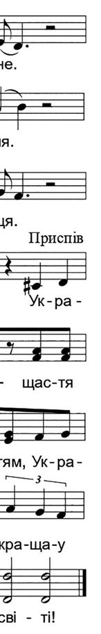 Âіðøі Íàòàëії Ïîãðåáíÿê Хтосьзапалив Внебівогонь символбажан няінадій. Сотнівіків світятьвони, шлють нам ві - тан нявчаснічний. Типодивись вочіночейлітньогодня узорепад. Скажутьвони: 3 "Зпоміжлю дейщастятизмо жеш від - шу - кать Хайлю боврозцвіте -- --утеп літвоїхдолонь, Хай зі рі - є во - на серцяніжноговогонь. Хайне зможутьздолать мрійок --- --ри - ле - них ро - ки Щастя всімпобажай наві ки!Приспів