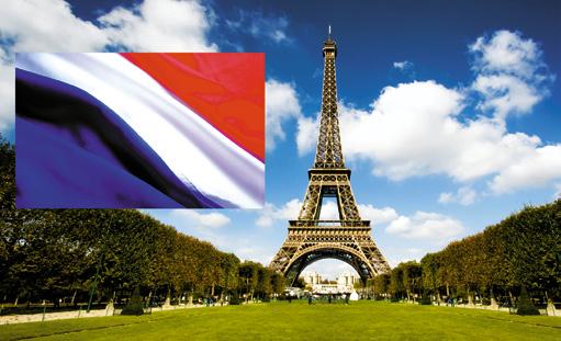 Un drapeau tricolore : La tour Eiffel bleu, blanc, rouge