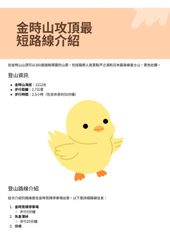 ⾦時⼭攻頂最 短路線介紹