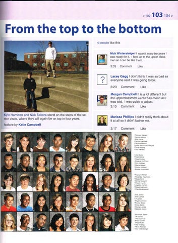 Morgan Campbell It is a lot different but the upperclassmen weren 't as mean as I was told. I was quick to adjust. 3:15 Kyle Hamilton and Nick Sokora stand on the steps of the senior circle , where they will again be on top in four years.