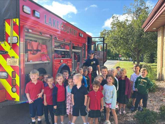 Fire safety is a crucial life skill that everyone, including children, should understand and practice. Our 4K class loved learning about Fire Safety and Prevention which included a visit from the Lake Country Fire Department. We learned when there is a fire we need to get out and stay out. We know we should call 9 -1-1 if there is an emergency. We practiced doing STOP, DROP, and ROLL so we know what to do if we ever get fire on our bodies. We discussed things that are flammable and things that are not safe for a child to touch. We each made a fire truck and then through a directive drawing drew a firetruck. We participated in a fire drill, so we know how to safely exit the building. We enjoyed our visit from the Lake Country Fire Department. They talked to us about fire safety and prevention, showed us their special clothes they wear to keep them safe when fighting fires, and gave us a tour