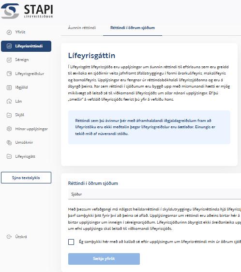 Athugið að lífeyrisgáttin sýnir aðeins upplýsingar um réttindi í
