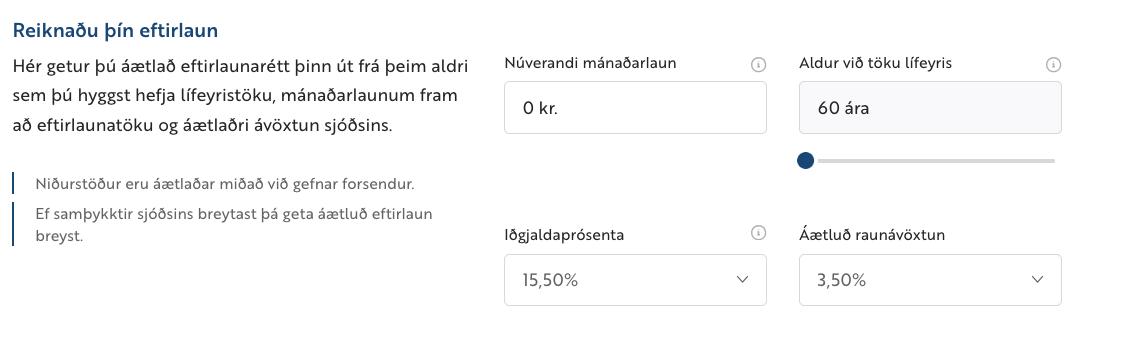 Á sjóðfélagavef er lífeyrisreiknivél þar sem hægt er að áætla