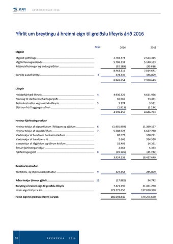 Yfirlit um breytingu á hreinni eign til greiðslu lífeyris árið 2016 Skýr.