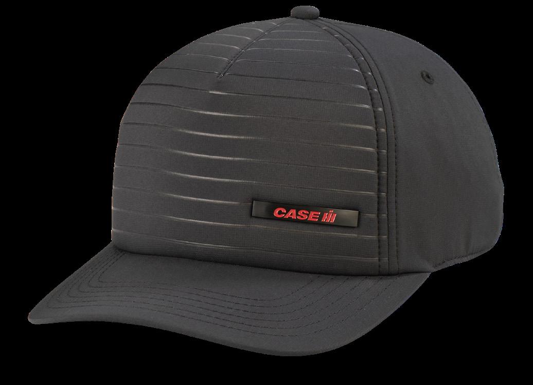 FIT: Low profile, structured. MATERIAL: 100% polyester with embossed stripes across front of crown. CLOSURE: Fabric strap with clip buckle. Import. Matte embossed metal badge.