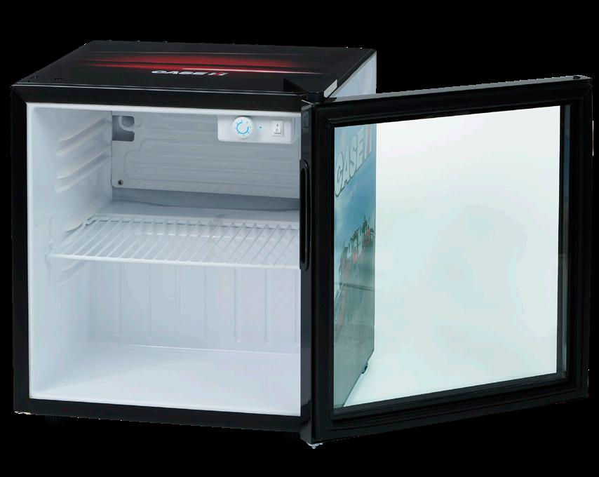 Steel frame with black tempered double-layered glass front door, LED interior lighting, adjustable shelf. 18.5”W x 20”H x 17”D.Imprint. Import.