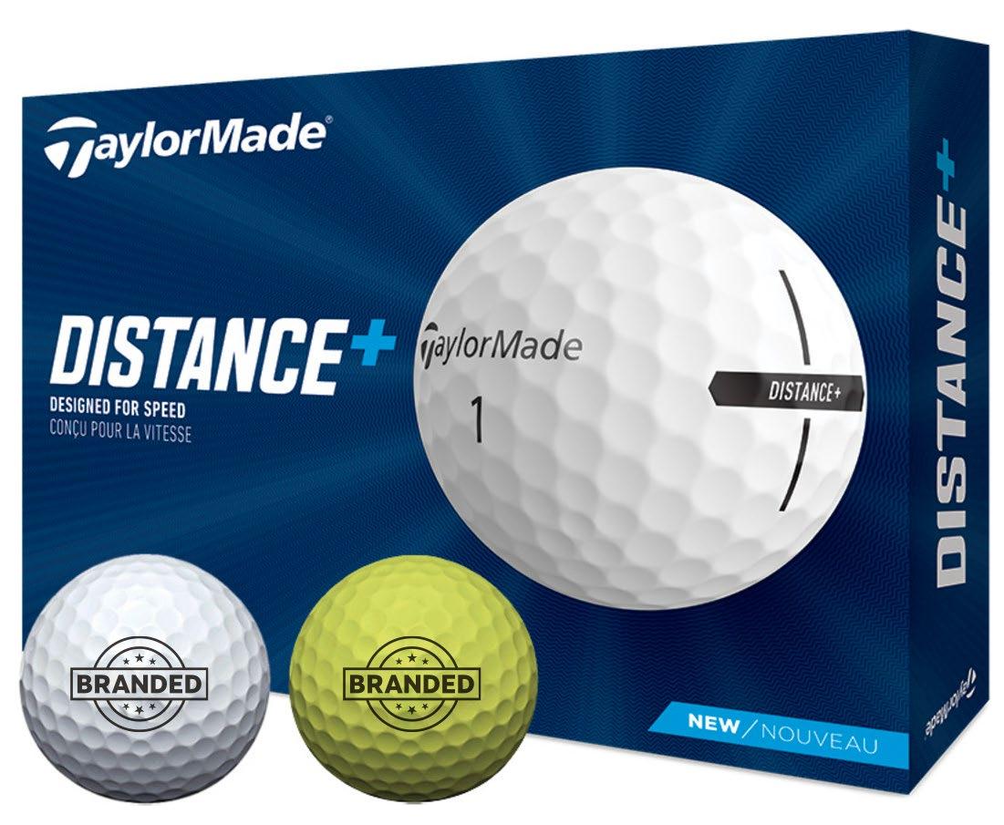 Style #: MOQ: MSRP: TAY-D+ 12 Dozen $24.00 HEX Aerodynamics reduce drag and promote high launch for increased speed and distance. The high-energy core is highly compressible to unlock more potential distance. Taylormade Distance+ Golf Ball