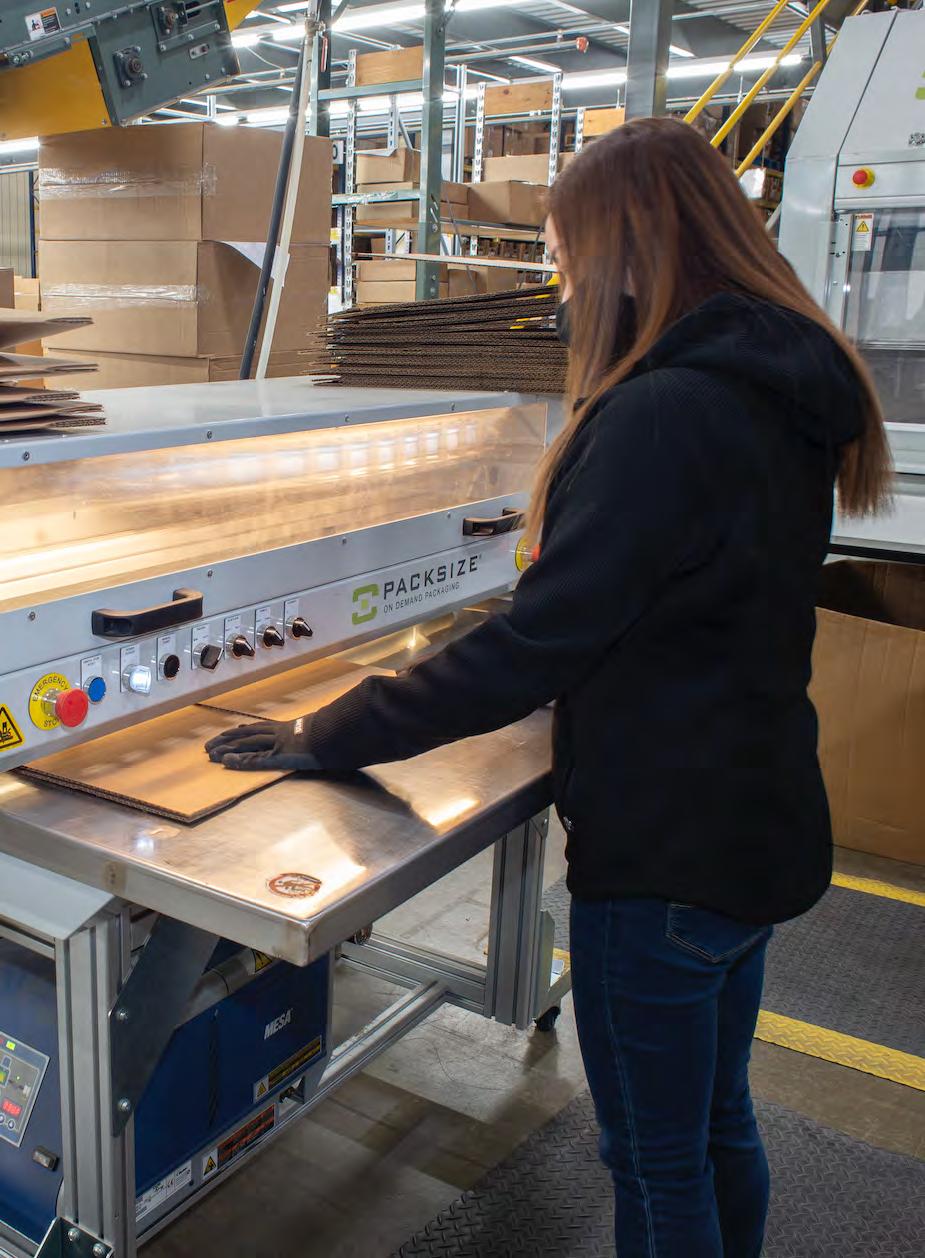 We have the most advanced decoration and fulfillment center in the industry that uses special Packsize® technology to eliminate waste with on-demand box production. With this technology, we can reduce box size by 40% with 60% less void space to help limit transportation and material waste.
