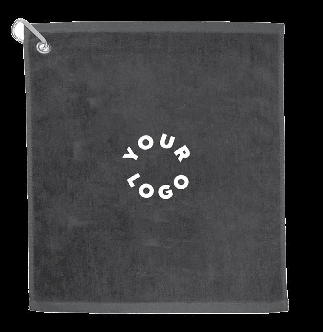 The lightweight 18" x 15" Terry Golf Towel is made with 100% cotton and comes with a grommet, plus an aluminum carabiner clip that can be easily attached to your golf bag.