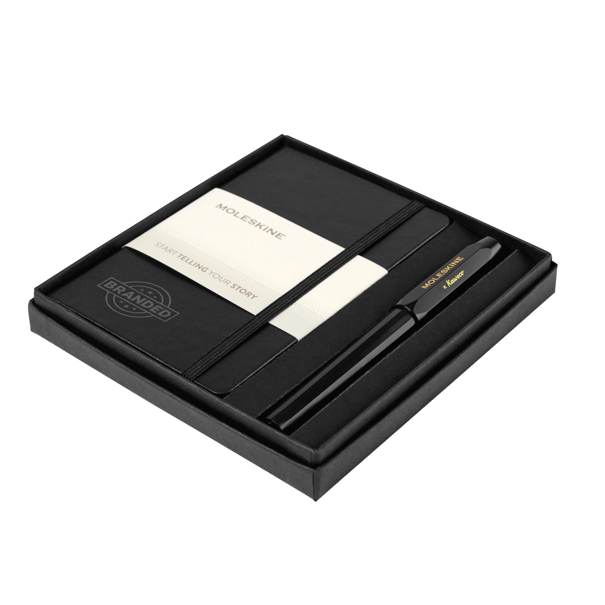 This gift set includes one Hard Cover Ruled Pocket Notebook and one Moleskine & Kaweco Rollerball Pen packaged in a two-piece Moleskine gift box