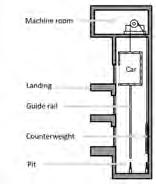 minimal; a small push is sufficient to propel one child up and the other down. Similarly, the cab of a traction elevator is attached to steel cables which run up the elevator shaft and over a pivot, with a counterweight on the other side (see Fig. 3). The weight difference is minimal; an electric motor pulls the cables to move the cab up and down the shaft.