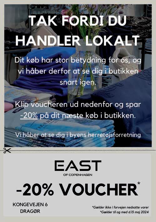 Flemming Falk Hansen (th) og tidligere redaktør Finn Edvard. Dragør Nyt er en af Danmarks tilbageværende privatejede ugeaviser og har siden 1957 leveret lokale nyheder til borgerne i Dragør Kommune. I dag udkommer avisen fortsat i trykt udgave som broadsheetavis. Den husstandsomdeles gratis i hele kommunen, ligesom avisen også kan afhentes en række steder fordelt over hele Dragør. Desuden kan avisen og dens artikler læses gratis på dragoernyt.dk Avisen ejes og udgives i dag af Starco Grafisk, der har været involveret i produktionen af den i over 50 år. Rasmussen & Sønner VVS & KLOAK INSTALLATØRER Tagarbejde, Naturgas, Fjernvarme Kastrupvej 161, DK-2300 København S Tlf. 32 58 22 67 & www.rasmussenogsoenner.dk Spira Toilet Inkl. montering, sæde plus materialer 5.895,31 25 06 33 | KONGEVEJEN 2 BOOK BORD PÅ RE-DRAGOER.DK TAG EN BID AF ITALIEN PÅ KONGEVEJEN • Rejsevaccination • Vaccinationer • Stressbehandling Læge også weekend og aften – Strandjægervej 8 ydemann.dk myMEDICApS –privat s p e c hcaoc&kinilkegællai – SMS på 919 919 31 Juvelér Barbara Maria Kongevejen 11 Dragør 32 53 05 69 www.barbaramaria.dk SpringClean ... fordi vi elsker når smykker funkler SPAR 20% på polering, rhodinering og ultralydrens 32 53 90 99 Hovedgaden 20 www.troelscykler.dk Altid et stort udvalg af elcykler Prisgaranti på alle cykler Afhentning af cykler 50 kr. pr. vej (75 kr. for ladcykler) ÅBNINGSTIDER Man., tirs., ons. og fre. 9.00–17.30 Tors. lukket Lør. 10.00–13.00 Living Din lokale mægler Dragør Vestgrønningen 2 · 2791 Dragør 293@edc.dk · Tlf.: 32 53 11 00 Edcliving Vi er den mæglerbutik der sælger flest villaer her på vores dejlige ø. Det er vi meget stolte af Vi er også klar til at hjælpe DIG! Start med et GRATIS salgstjek EDC Living sælger flest villaer – vi har solgt flest villaer på HELE Amager de seneste 12 måneder, og det er vi ret stolte af – når vi nu selv skal sige det. * Kilde: boligsiden.dk –15.03.2024. Solgte villaer* Bøgvald Tlf: 32 53 10 25 Krudttårnsvej 8G | 2791 Dragør Dygtig ejendomsmægler God pris Trygt boligsalg Anette Bøgvald Sainis Indehaver Ejendomsmægler & valuar, MDE Tilfredse kunder – 9,6 ud af 10 Kilde Boligsiden 27.03.24 Man.–fre.: kl. 10–17.30 Lørdag: kl. 10–14.00 DONNA Krudttårnsvej 8 32 53 04 00 600,Dagens ret Onsdag fra kl. 17.30 Stegt flæsk ad libitum håndskåret med persillesovs, kartofler, rødbeder og sennep kr. 169,Færgevej 1–3 2791 Dragør 32 94 07 70 www.cafeespersen.dk Bestil plads på tlf. 32 94 07 70 Kan også fås som takeaway SYDSTRANDENS SLAGTER v/Joachim Rasmussen Krudttårnsvej 8 – tlf.: 32 53 10 41 Sashi tyndsteg Pr. ½ kg 150,Perfekt til både bøf og steg Husk at vi har færdigretter samt mad ud af huset – tjek vores menuer på www.sydstrandensslagter.dk Ugandavej 111, Kastrup, tlf. 32 53 65 80 Man.–lør. 8–20 Prisen gælder fra fredag den 5. til og med torsdag den 11. april – så længe lager haves VESTAMAGER CENTRET UGANDAVEJ 111 NESCAFÉ GOLD INSTANT KAFFE 175–210 g. Flere varianter. PR. STK. 65,Gartnerstræde 8 Tlf.: 32 53 46 13 Tirsdag–fredag 10–17 Lørdag kl. 10–16 Søndag og mandag lukket storemaglebyblomster@gmail.com Besøg også vores webshop: storemaglebyblomster.dk Søndergårdens Købmand Bachersmindevej 5A · Tlf. 32 94 95 43 Vi har åbent alle ugens dage fra kl. 8–20 Lækre hjemmelavede chilier – og masser af specialiteter: Oliven, Humus, Tzaziki, Feta, Soya, Olier, Ajvar, Paste – og meget mere! Foråret er nu godt i