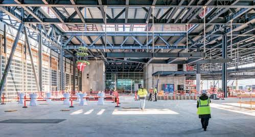 af. Vi vil dog sørge for, at byggeriet medfører så få gener for passagererne som muligt,« tilføjer Christian Poulsen. Det nye terminalområde måler imponerende 180 meter gange 60 meter og er 25 meter højt. Bygningens konstruktion er fleksibel og er designet til at kunne ombygges til fremtidens behov. Med lange gitterdrager, der skaber et frit spænd på op til 60 meter, er der kun få bæ-
