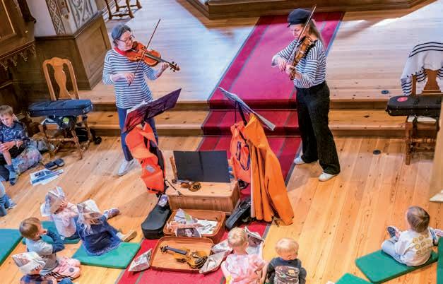 Dragør Skole. Duoen giver også lidt musikundervisning. Foto: TorbenStender. Duo Cherubino underholder Dragørs mindste i Dragør Kirke. Foto: TorbenStender.Mette Hansgaard afslutter med at rådgive om, at man for at se nordlyset bedst muligt finder sig et ståsted med lav eller ingen gadebelysning. MS