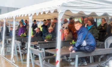 Arrangørerne havde opstillet tre store telte med borde og bænke, hvor deltagerne opstillet kunne søge læ, da regnen var mest voldsom.