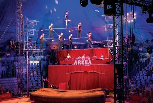 Inden forestillingen skal begynde, emmer pladsen foran cirkusteltet af god og forventningsfuld stemning, mens der fra salgsboderne bliver fyldt op med forsyninger.