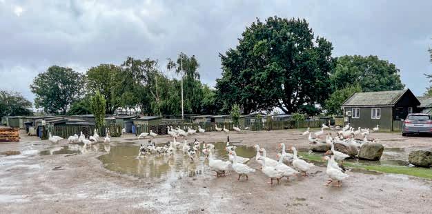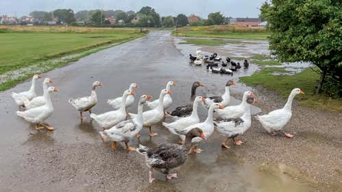 Gåserepublikkens gæs holder deres helt eget vandpytte-party, når himlen åbner sluserne. Fotos: HAS.