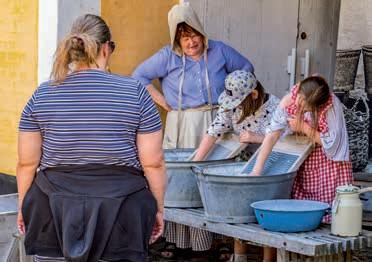 I denne uge kan museets gæster møde den højtråbende, rødhårede vaskekone, der i en sky af sæbevand vil svinge vaskebrættet, mens hun fortæller spændende historier til alle, der sætter sig ned og lytter. Historiefortæller Pernille Stockfleth, kvinden bag den råbende vaskekone, er fast inventar i museets højsæson –og som tilbagevendende gæst på museet ved man, at hendes livlige og fascinerende fortællinger er værd af sigte efter.