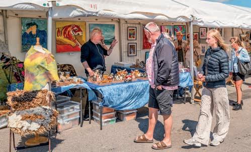 tede folk i alle aldre gang sig af tilbud som eksempelvis at kreere et kunstværk udført i geltryk – og måske var det sol og tørvejret, der søndag førte til en lind strøm af kreativitetslystne sjæle, der tog imod mulighederne på de to stande. Dragør Kunst Festival 2024 blev afviklet under noget van(d)skelige vejrlige forhold, men for arrangørernes og de vedholdende udstilleres vedkommende blev alle lørdagens strabadser hurtigt glemt. For under søndagens stemningsfulde iskagevejr fik de med god musik og et stort publikum bekræftet, hvorfor Dragør Kunst Festival er et besøg værd. MS