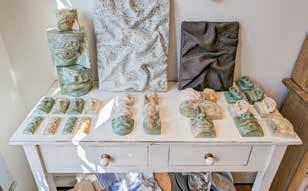 sommeraftener, og nu laver hun også små kakler med sjove motiver. Inspirationen til værkerne har Aino Møller blandt andet fra sin tid i Frankrig, hvor hun stadig var i gang med væven, og fra nogle år på Bornholm, hvor hendes produktion af kakler tog sin begyndelse. Annette Bredstrup arbejder fortsat på væven, men hun laver også collager og udvikler mønstre til sypuder, som sæl-