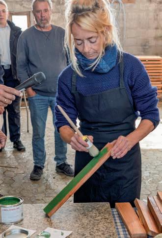 Inge Stadil fra farvefirmaet Decor viste, hvordan man plejer sit træværk med linoliemaling.