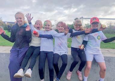 2,5 kilometer med i alt 18 poster, hvor de skulle igennem en forhindring. På seks af posterne fik de kastet farvepulver på sig. Så jo flere poster, eleverne havde gennemført – og jo flere runder de løb – jo mere farverige blev de. Foto: Nordstrandskolen