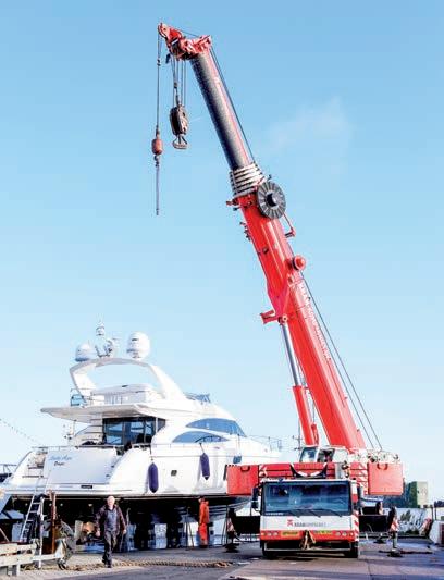 Der skal forstærkning fra en stor mobilkran til, når de største både skal op på land.