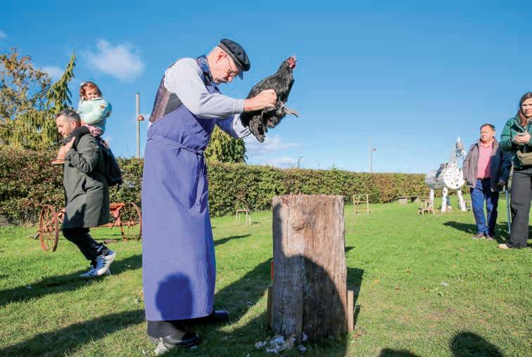 Et hårdt klonk mod huggeblokken, et solglimt i et økseblad og et hoved, der ikke længere hang sammen med resten ... Det var ikke sjovt at være høne på Amagermuseet på Hovedgaden i Store Magleby i den forgangne uge – og det var næppe en trøst for de fjerkræ, der måtte lade livet, at de gjorde det i en god sags tjeneste som underholdning og oplysning om livet på landet i fortiden. For de tobenede, der var så heldige ikke at være iklædt fjerdragt, var netop lærerig underholdning kernen i